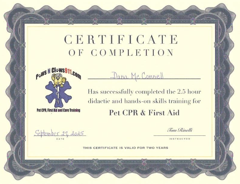 We are dedicated to being well educated about ethical and healthy breeding practices and have completed several certifications to expand our knowledge and ensure we are taking the best care of all of our pups.